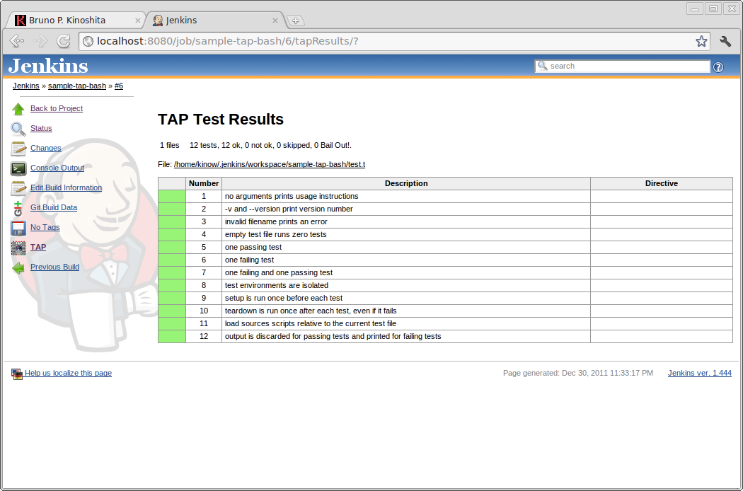 But you know what? Why not execute execute locally first to check if that’s working… moreover, why not use Jenkins TAP Plug-in and see what happens?