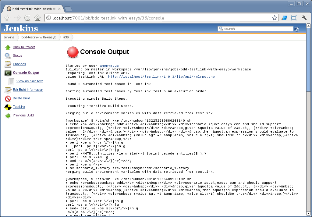 Last night and this morning I spent some time working on running BDD tests that were created in TestLink in Jenkins, using testlink-plugin.
